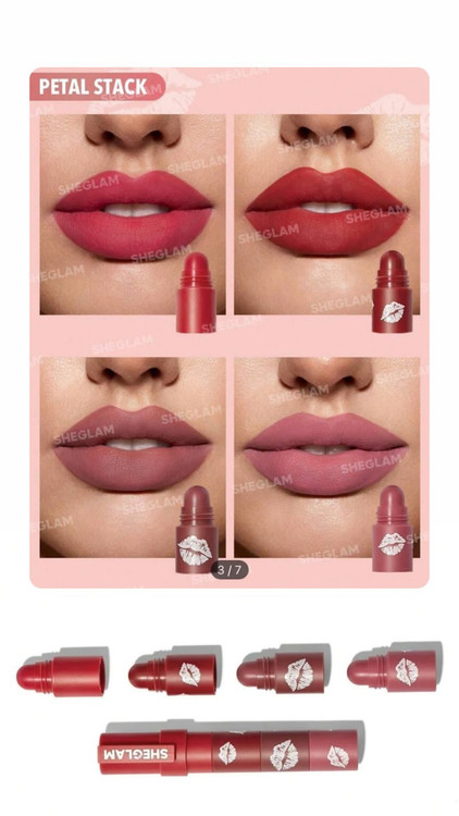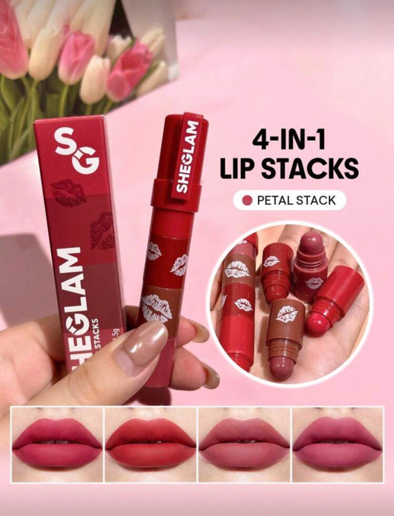 رژلب ۴ طبقه شیگلم با ۴ رنگ کاربردی و جذاب، بافت نرم و ماندگاری بالا مناسب برای آرایش روزانه و مهمانی.